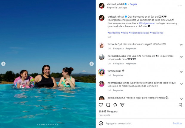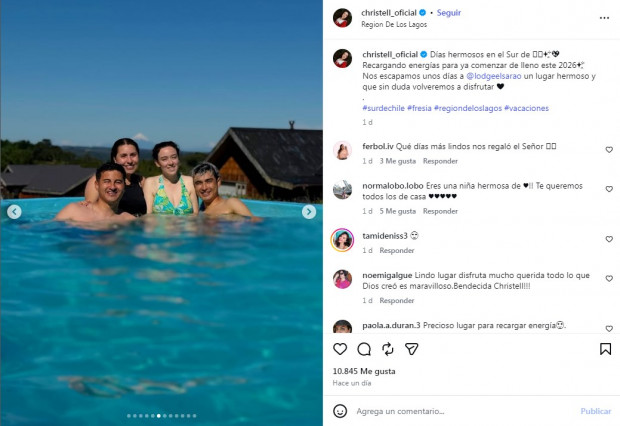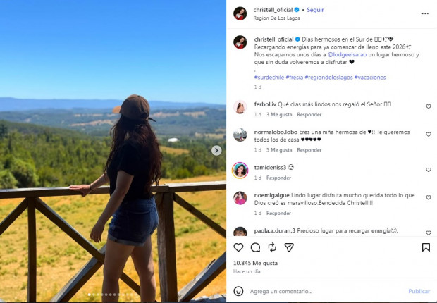 “Días hermosos en el sur, recargando energías para comenzar de lleno este 2026. Nos escapamos unos días a @lodgedelsarao, un lugar hermoso que sin dudas volveremos a disfrutar”, escribió la artista junto a las instantáneas en Fresia, Región de Los Lagos.