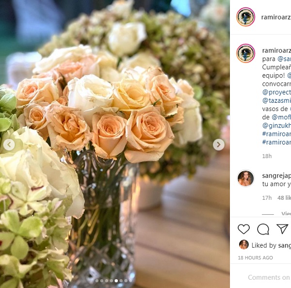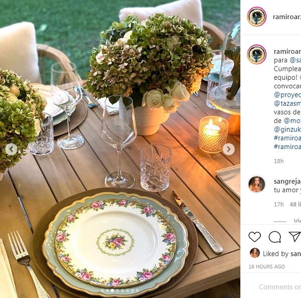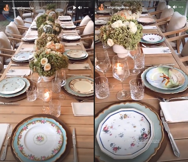 La mesa al aire libre contó con delicada vajilla antigua, servilletas hechas a mano y arreglos florales con variedad de rosas y hortensias. El diseñador compartió las imágenes en Instagram: