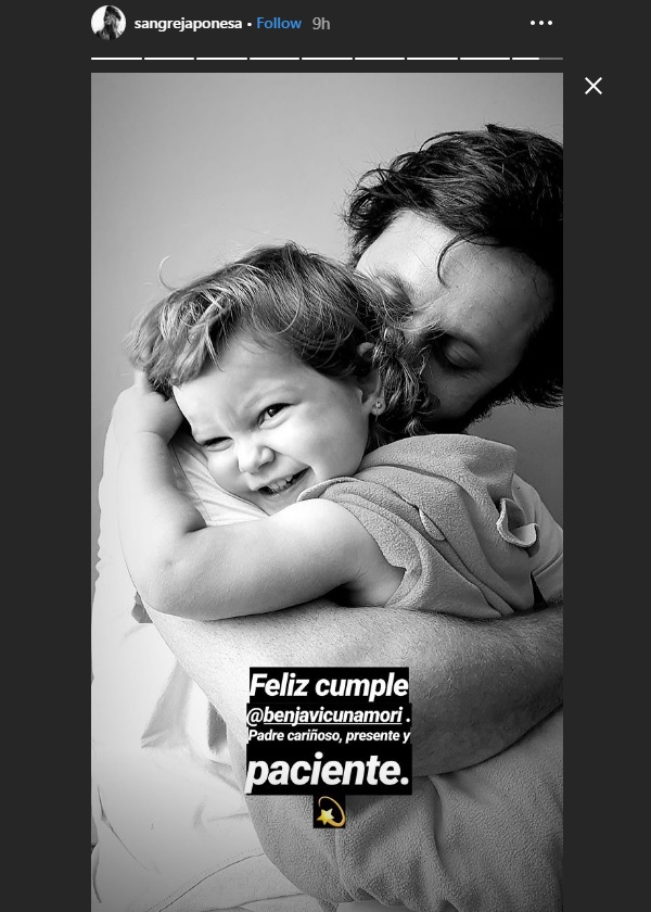 “Feliz cumple @BenjaVicuñaMori. Padre cariñoso, presente y paciente”, escribió la actriz junto a una tierna foto de él junto a la pequeña Magnolia, en las stories de Instagram.
