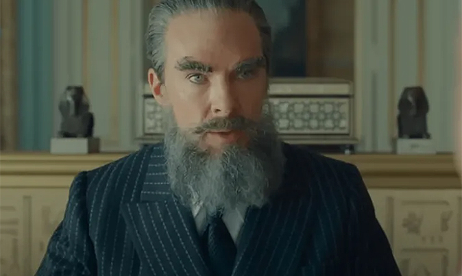 El conocido “Doctor Strange” aparece en escena con un traje negro a rayas, cabello gris y una espesa barba canosa. De lo que mostró el actor, lo único con lo que es posible saber que es él, son sus característicos ojos azules.