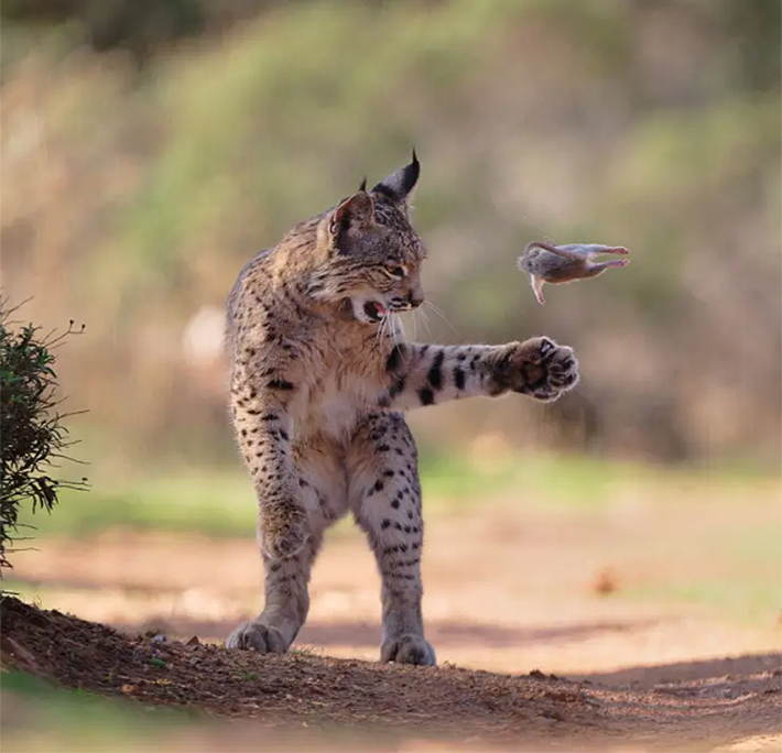 Y en el primer lugar quedó ubicada una postal bautizada como “Roedor volador”, que muestra a un lince jugando con su presa.