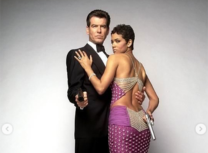 Una elección de parte de Kim Kardashian que logró una reinterpretación fiel de lo que fue el vestuario de Halle Berry junto a Pierce Brosnan en la saga James Bond, y que obviamente sacó aplausos en las redes sociales.