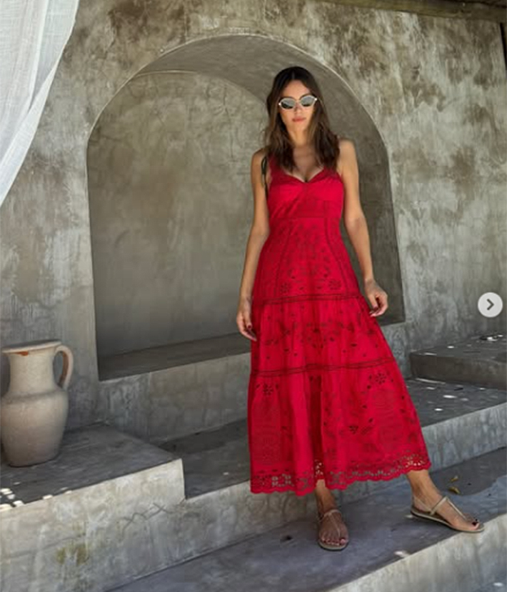 Sobre el look, Pampita aparece en las fotos con una tenida de color rojo y blanco que la hizo lucir muy estilosa y veraniega. En un escenario que junto a ella logran recordar paisajes de idílicos de Argentina.