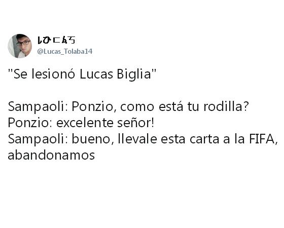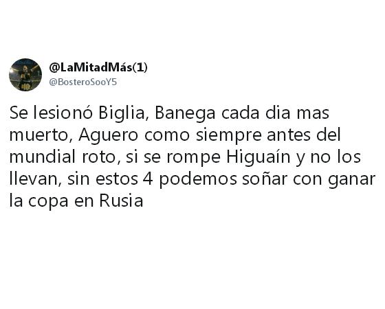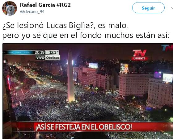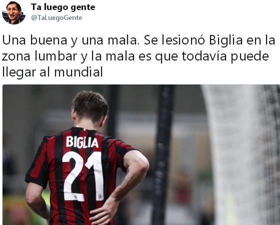 Algunos de los usuarios argentinos de las redes sociales llegaron a considerar que la ausencia de Biglia incrementa las posibilidades de ganar el Mundial.