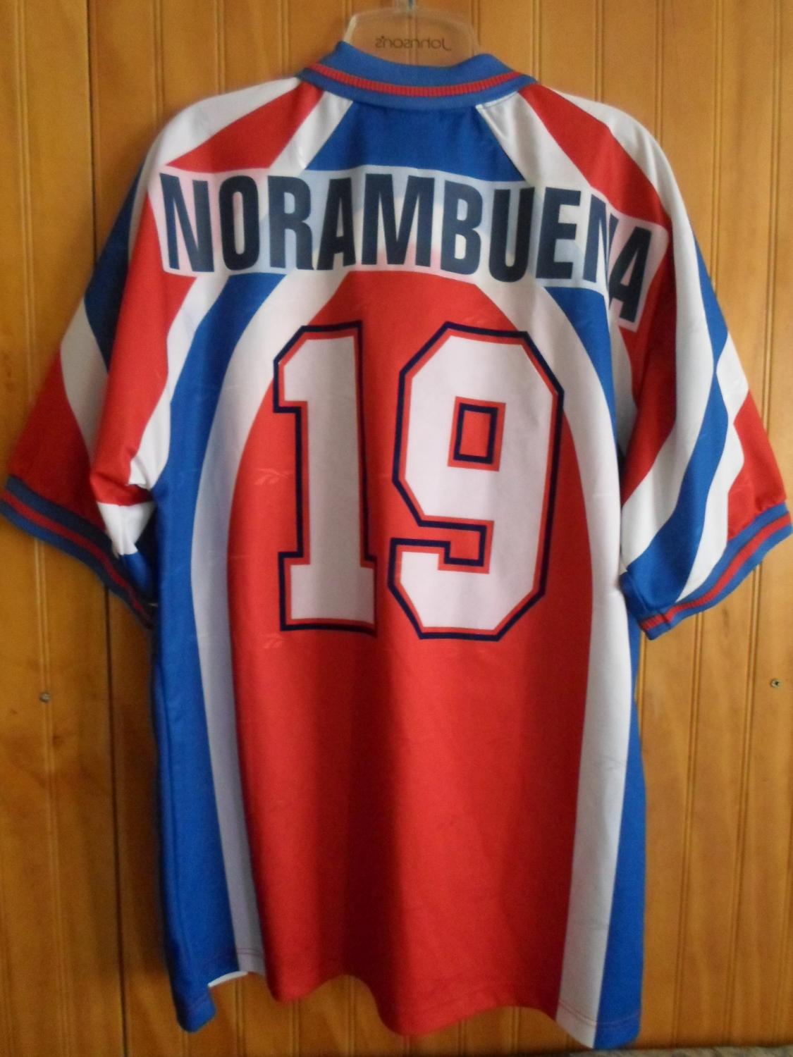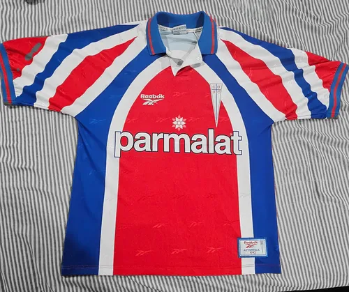 Se trata de una polera roja, con los bordes azul y blanco, y el cuello azul, rememorando la mítica camiseta Reebook que utilizó a fines de los 90′ y principios de la temporada 2000.