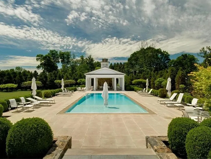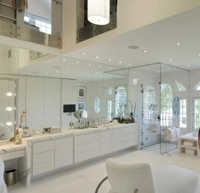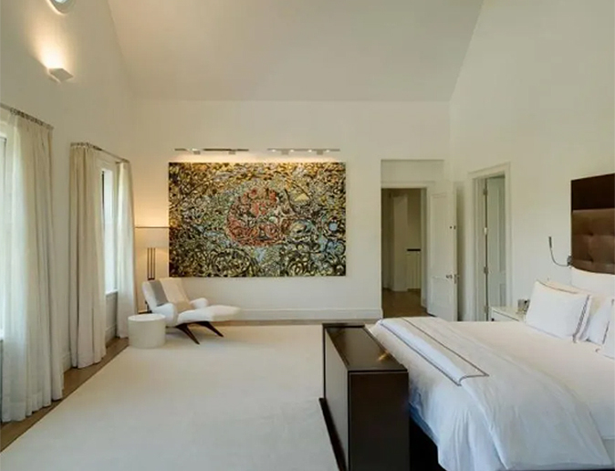 Con cuatro habitaciones, una enorme piscina, gimnasio privado, amplios jardines, cocina equipada con alta tecnología, duchas con paredes de cristal y detalles con exclusivos diseños, son algunas de las características de la propiedad diseñada por la empresa Kobi Karp.