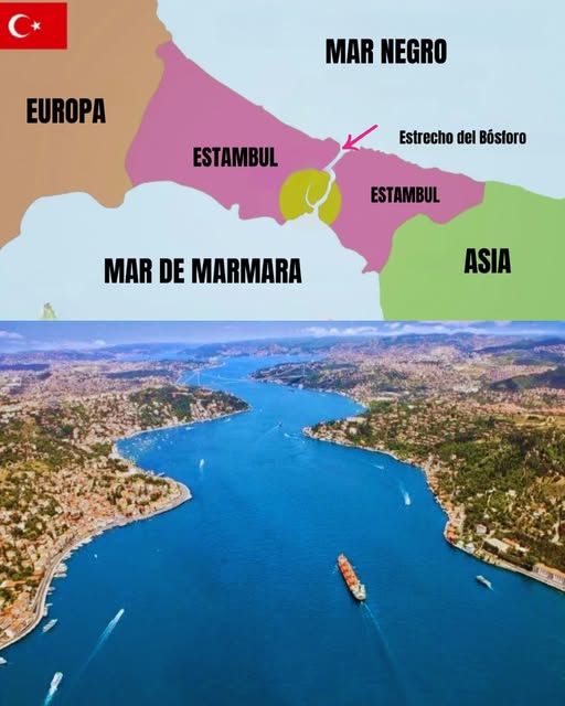 El Bósforo o estrecho de Estambul es un canal angosto en forma de “S” que que separa Europa de Asia y tiene una longitud de 30 km y una anchura que oscila entre los 700 metros y los 3,7 km. Es una de las vías navegables más transitadas y estratégicas del mundo para el comercio marítimo y su control ha sido crucial para imperios como el Bizantino y el Otomano, protegiendo Constantinopla.