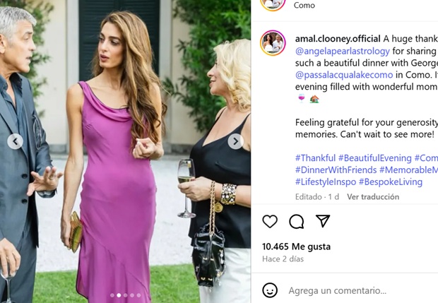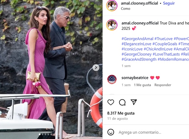 Durante un evento privado en su residencia de Lago di Como, la abogada y activista internacional deslumbró con un vestido satinado en tono violeta, una elección que no solo resaltó su bronceado veraniego, sino que también transmitió sofisticación y poder femenino.