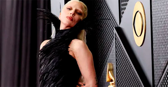 En contraste, fiel a su estilo, Lady Gaga apostó por el dramatismo absoluto con un vestido confeccionado íntegramente en plumas negras, una pieza escultórica hecha a medida por el dúo canadiense Matières Fécales que reafirmó su esencia performática y su capacidad de convertir cada aparición en una obra de arte.