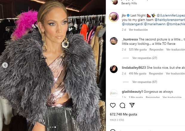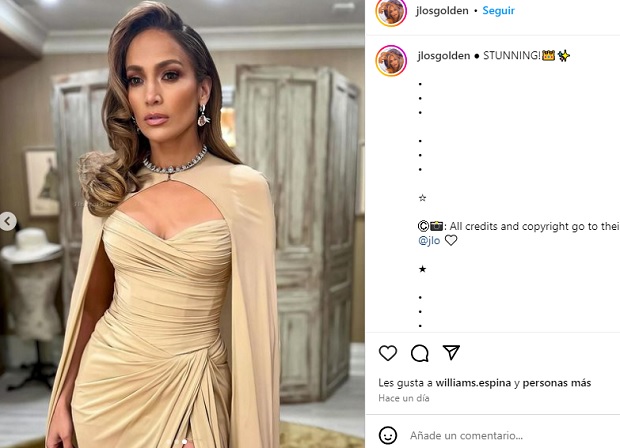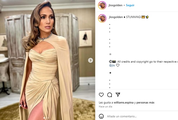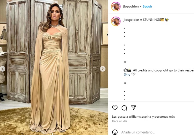 Como punto culminante a este look, la estrella del Bronx complementó con una capa vaporosa de gasa a tono con cierre mediante corchete.