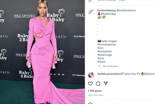 Para la ocasión, la más famosa del clan Kardashian se enfundó en un atrevido vestido rosa, extra ceñido.