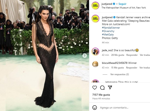 Kendall Jenner lució un vestido Givenchy negro de pedrería con detalles en color bronce y flecos en la parte superior. Además, destaca su profundo escote en V y su espectacular caída hasta los pies.