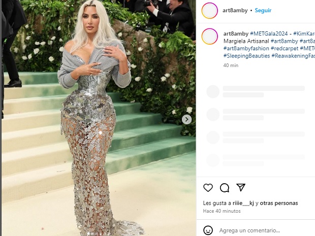 Por undécima vez, Kim Kardashian llegó al evento luciendo un impresionante traje plateado de la firma Maison Margiela.