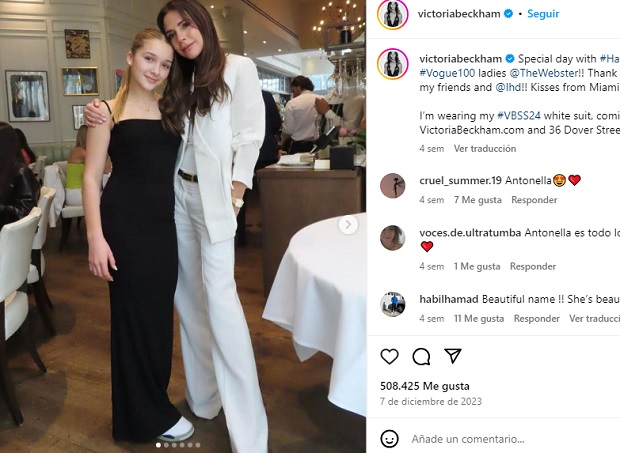 A sus 12 años, la pequeña de la mediática familia acompaña a la ex Spice Girls a actividades por su trabajo, eventos, entrevistas o desfiles.