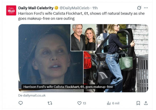 Esta salida llega a varios meses de su última aparición pública, en septiembre de 2025. En aquella ocasión asistió junto a Harrison Ford -su marido- a la ceremonia de entrega de los Emmy, donde Flockhart fue nominada en tres oportunidades en su carrera.