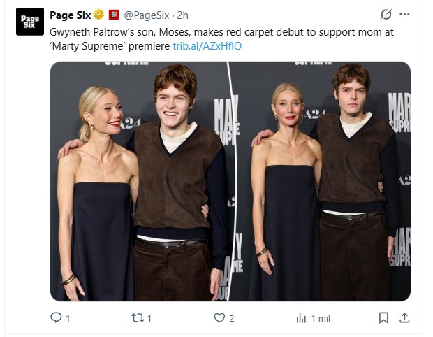 Sin embargo, también está Moses (su otro hijo), quien no era tan conocido como Apple. Parece que Paltrow está decidida a cambiar esto, porque decidió que la acompañe a la premiere de la cinta “Marty Supreme” que se llevó adelante en Los Ángeles.