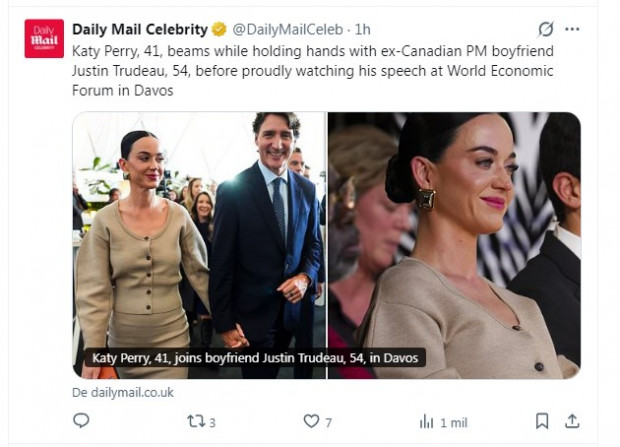 Katy Perry cada día más enamorada: Fue fotografiada de la mano de Justin Trudeau previo a ver su discurso en Davos