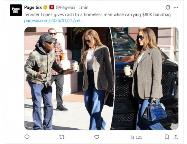 Las “dos caras” de JLO: Lució bolso avaluado en US$80 mil pero ayudó con dinero a una persona sin hogar
