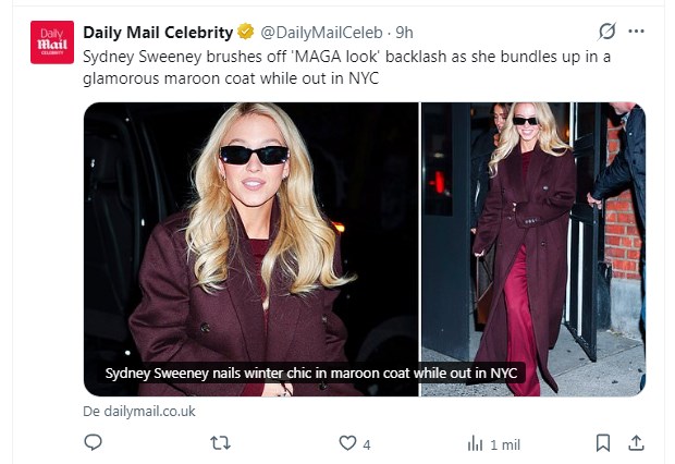 En medio, la intérprete volvió a recibir comentarios negativos, tras lo que fue su presencia en el programa de Jimmy Fallon. Sweeney fue acusada de llevar al show un look conservador (al estilo “MAGA”) y de usar peluca. Lo cierto es que no fue Sydney: quien respondió, y decidió confrontar con los haters, fue su propio estilista.