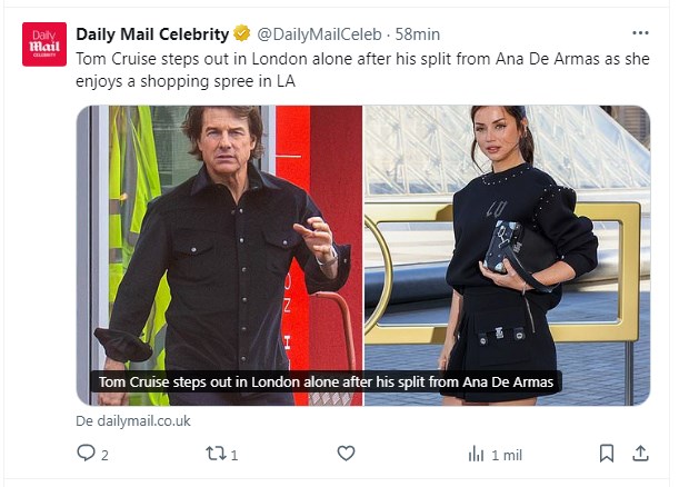 Ya se dijo: pareciá que serían la próxima gran pareja de Hollywood… pero el amor se terminó al cabo de unos pocos meses. Las sospechas partieron con las fotos de Ana de Armas sin su supuesto novio, para luego confirmarse la ruptura con Tom Cruise.