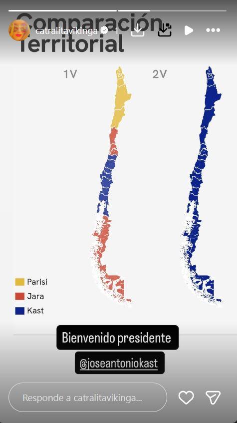 Mientras que Marcelo Ríos, tras criticar públicamente a la ex ministra del Trabajo en el actual Gobierno de Gabriel Boric, señaló en su perfil personal “Bienvenido José Antonio Kast, adiós comunistas”.