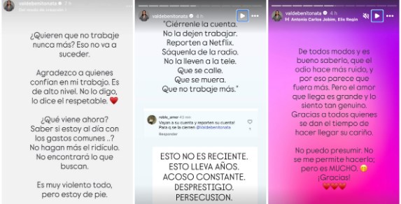 “¿Quieren que no trabaje nunca más? Eso no va a suceder”, escribió, además de asegurar que “esto no es reciente, lleva años. Acoso constante. Desprestigio. Persecución. De todos modos, el odio hace más ruido y parece que fuera mucho más”.